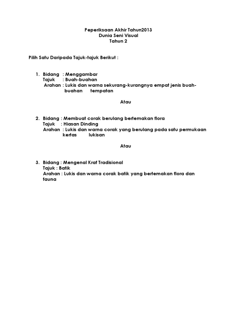Soalan Peperiksaan Dunia Seni Visual Tahun 2 Kssr Pdf
